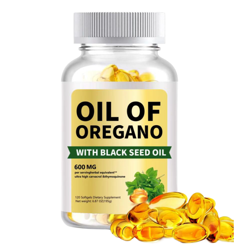El Oil of Oregano es un suplemento en cápsulas blandas que combina Aceite de Orégano con Aceite de Semilla Negra (Black Seed Oil). Proporciona un equivalente de 600 mg por porción, caracterizándose por un contenido ultra alto de Carvacrol y Timoquinona. Se utiliza tradicionalmente para el soporte antioxidante y el bienestar general.