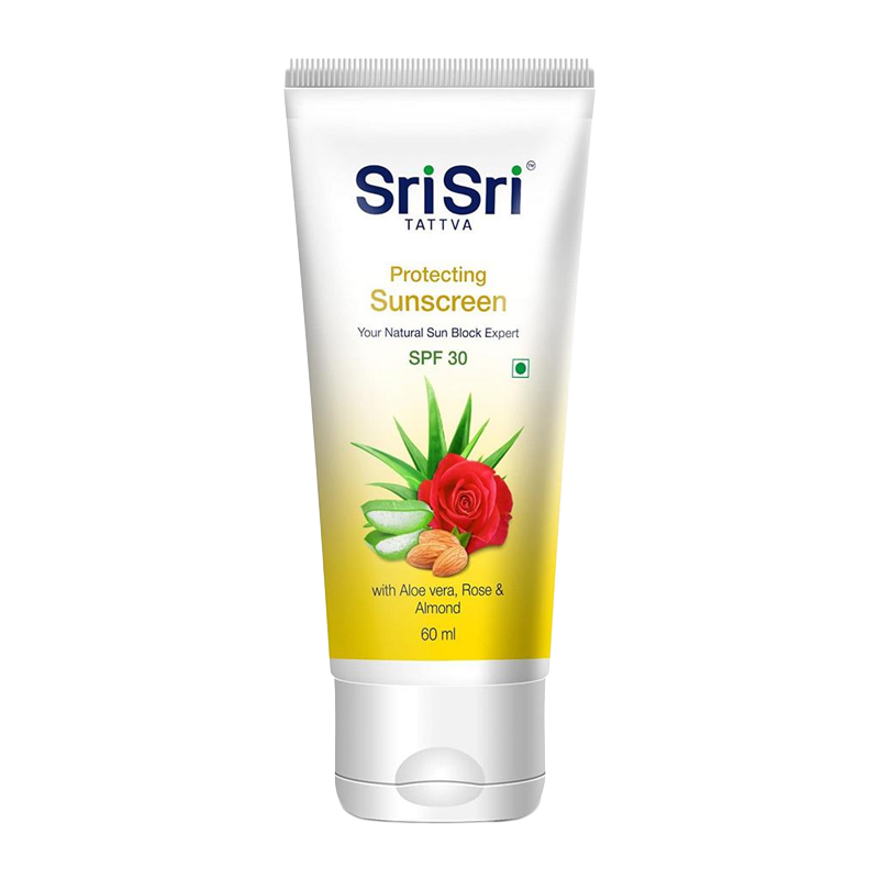 El Protecting Sunscreen de Sri Sri Tattva es un experto en bloqueador solar natural (Natural Sun Block Expert) con un factor de protección solar SPF 30. Está formulado con ingredientes naturales como Aloe Vera, Rosa y Almendra para proteger la piel de los rayos solares.