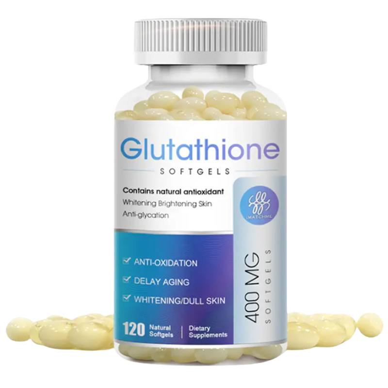 El Glutathione Softgels de iMATCHME es un suplemento de 400 mg que contiene un antioxidante natural. Su objetivo principal es el cuidado de la piel y la protección celular, ayudando a la anti-oxidación, el retardo del envejecimiento y el blanqueamiento/brillo de la piel (Whitening/Brightening Skin). También contribuye a la anti-glicación.