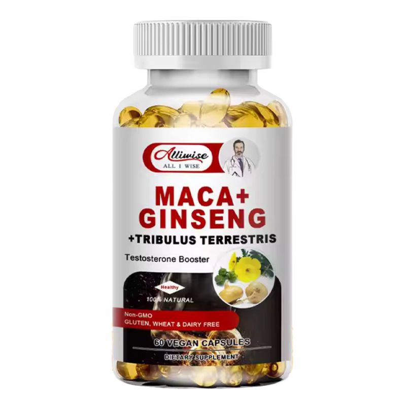 Maca + Ginseng + Tribulus Terrestris de Alliwise es un suplemento 100% natural diseñado como un Potenciador de Testosterona (Testosterone Booster). Combina tres extractos herbales conocidos por sus propiedades para la energía, la vitalidad y el soporte hormonal, contribuyendo al rendimiento físico y al bienestar masculino.