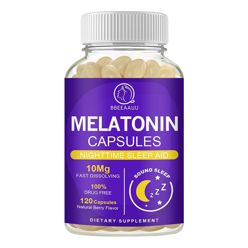 Las Melatonin Capsules de BBEEAAUU son una ayuda para el sueño nocturno (Nighttime Sleep Aid). Cada cápsula contiene 10 mg de Melatonina, en una fórmula de rápida disolución (Fast Dissolving), diseñada para ayudar a lograr un sueño profundo (Sound Sleep) y regular el ciclo de sueño-vigilia.